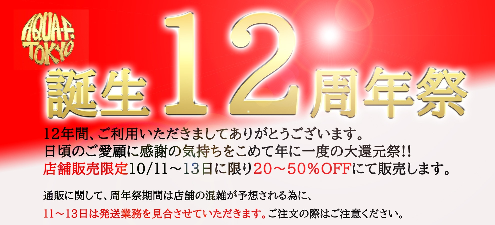 10/11(土)、10/12(日)、10/13(祝月)の3日間は、店頭限定の東京周年祭を開催します。